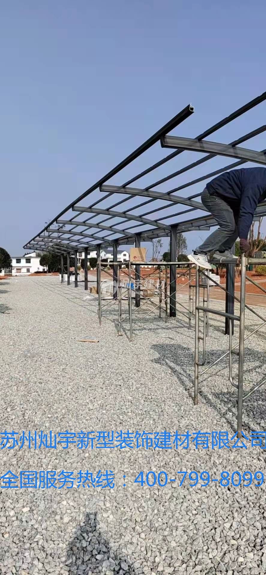 鋁合金車棚相對傳統(tǒng)鋼構車棚有施工快,鋁合金材料耐腐蝕重量輕等顏色款式多等優(yōu)點。